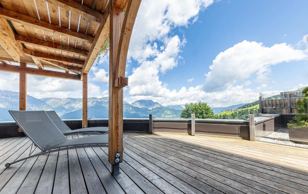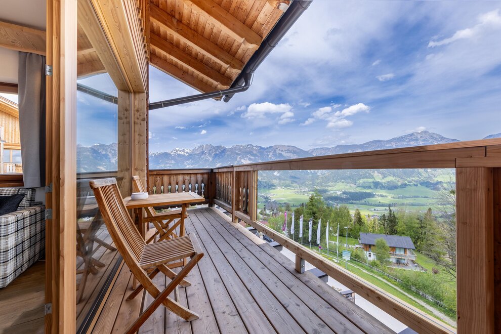 Sky Chalet Dachstein, Sky Chalet Grimming, Sky Chalet Ennstal: Nasze nowe apartamenty są w alpejskim stylu, z nieobrobionym drewnem z modrzewia i starym drewnem oraz wysokiej jakości materiałami! Ciesz się wymarzonym widokiem na Dachstein i całe Ennstal, a także na hotelowy naturalny kompleks wodny i rezerwat dzikich zwierząt.
