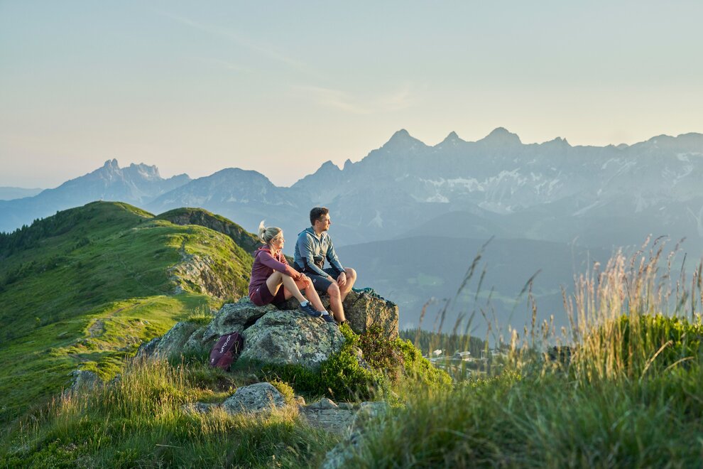Panorama natury leży u Twoich stóp. Doświadcz wschodu i zachodu słońca z widokiem na całe górne Ennstal!