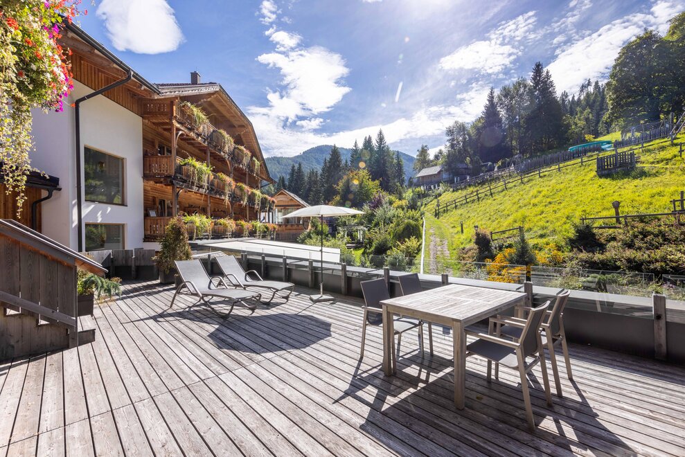 Na wysokości 1.117 m n.p.m., pośrodku gór Ennstal, otoczeni ich znanymi konturami, Dachstein, Grimming, Stoderzinken, Kamm i Gesäuse łagodnie konturują wolne wysokości – to tutaj zaczyna się luksus natury. To natura inspirowana codziennie, aby spełnić nasze zobowiązanie jako hotel natury i wellness. Z tego powodu zakorzeniliśmy naturę i jej dziedzictwo w naszej filozofii: naturalność, wellness w zgodzie z naturą, kulinaria natury, przeżycia w naturze, zrównoważony rozwój i design naturalny. Kto do nas przychodzi, cieszy się odskocznią od codzienności i zaspokaja tęsknotę za punktem wyjścia. Zanurzenie w bogatym krajobrazie natury, z rodzimymi zwierzętami i roślinami, sprawia, że zewnętrzny świat łączy się z wnętrzem. U nas pierwotność gór spotyka nowoczesne, alpejskie poczucie życia, wraz ze wszystkimi udogodnieniami. Doświadcz pachnącego drewna cyprysowego, lokalnej kuchni natury i wspaniałych widoków. Powstaje autentyczna przyjemność w rytmie natury. Poczuj czysty luksus rozległej strefy spa Höflehner. Ciesz się indywidualnymi możliwościami relaksu i zapierającymi dech w piersiach widokami w Premium Alpin SPA.