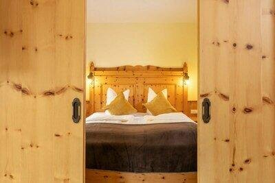 Furnished in the noble Voglauer style, it combines traditional craftsmanship with alpine elegance. The separate living and sleeping areas, the stylish bathroom with bathtub, toilet, cosmetic mirror, hairdryer, and hotel safe ensure the highest comfort.