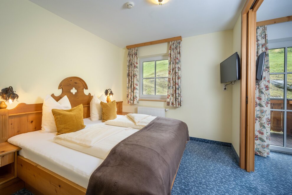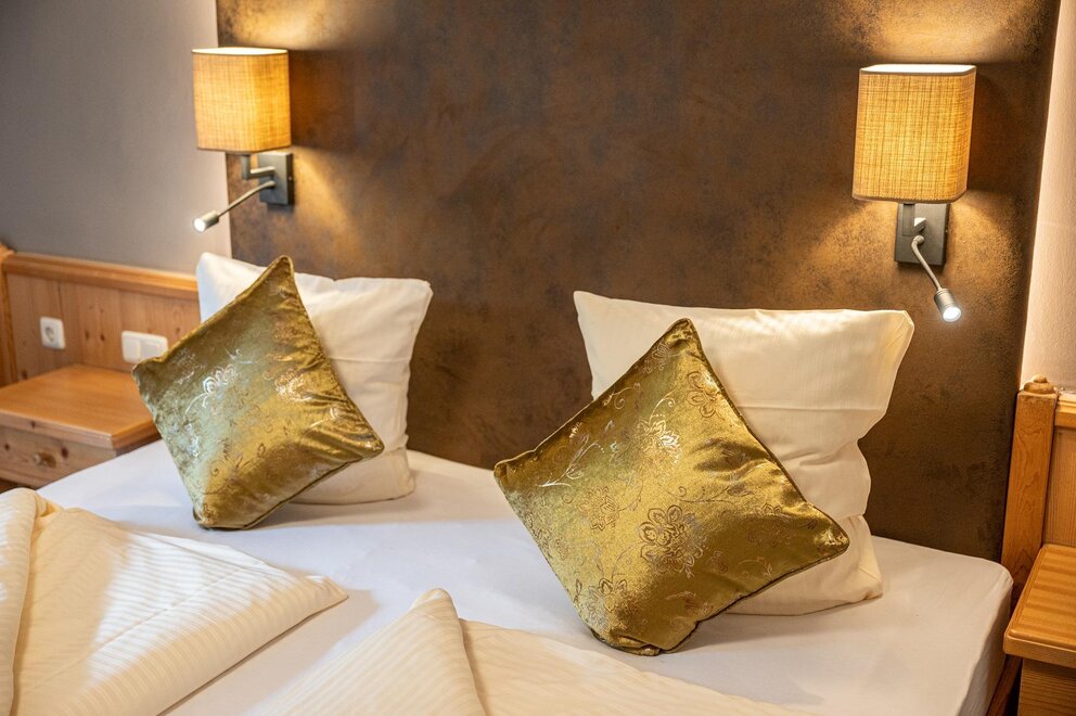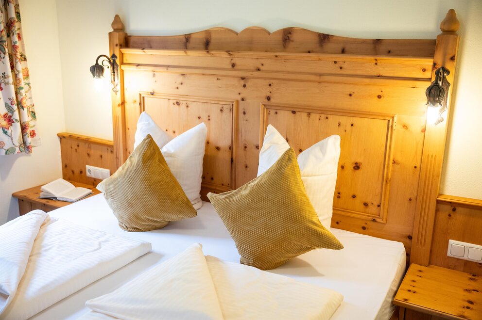 Our newly renovated Comfort Double Rooms "Joy of Life" offer a particularly cozy living experience – stylishly furnished with high-quality materials such as loden, leather, and native wood. The warm color scheme and loving details create a cozy atmosphere for relaxation.Equipped with shower/WC, Smart TV (flat), radio, cosmetic mirror, hairdryer, and hotel safe. Many rooms have a balcony with stunning views of the surrounding mountains. Ideal for couples who appreciate stylish tranquility and natural elegance.