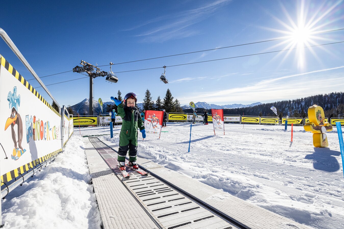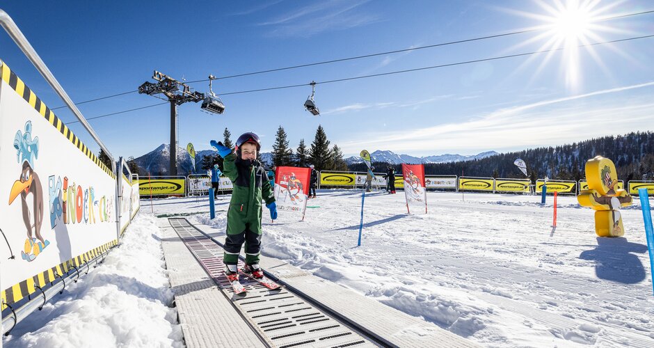 Children's area and practice slope in the middle of the ski resort, directly at the 8erJet Flachau mountain station, with 3 conveyor belts