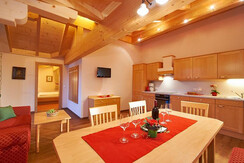 1 double room, 1 triple room with sofa bed, 1 living room with kitchen and sofa bed, 2x shower/WC, no stairs and barrier-free bathroom.