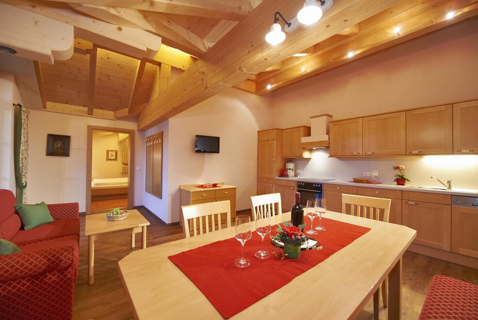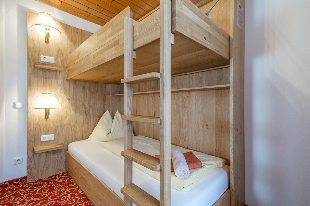 The new courtyard chalet extends over two floors and is perfect for families. A modern gallery is installed on the upper floor. From the terrace you have direct access to the garden.