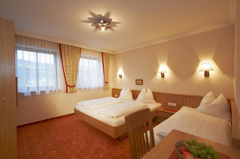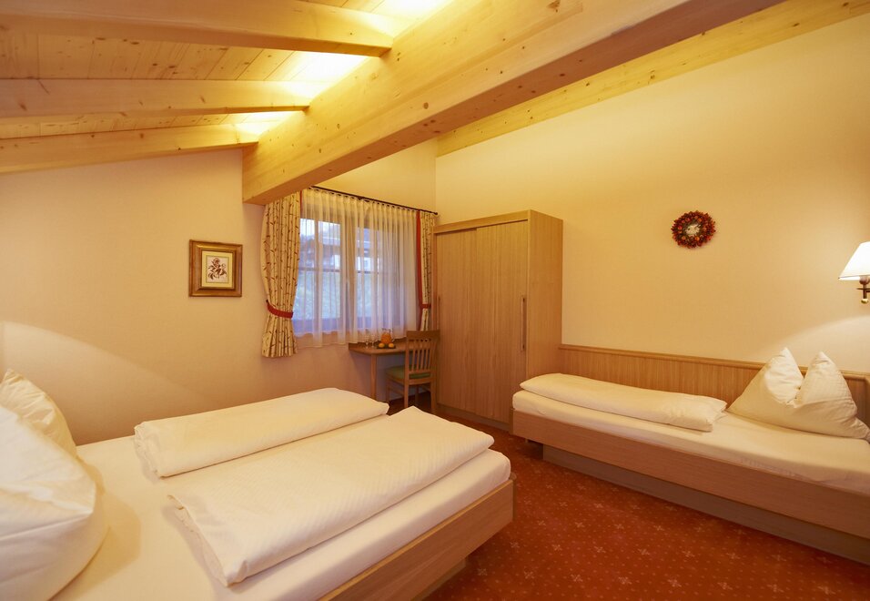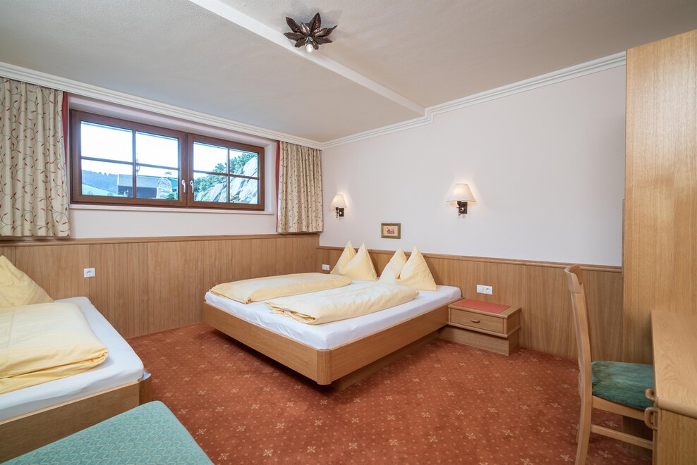 jednolôžko, počet jednolôžok: 2, dvojlôžko (1 posteľ/2 matrace), počet manželských postelí: 2, možnosť oddelených postelí, počet gaučov: 1