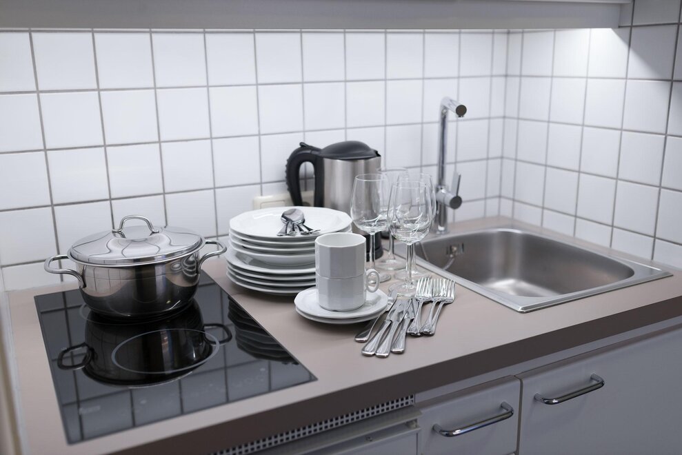 • Das gesamte Essgeschirr, Besteck und Gläser werden desinfiziert