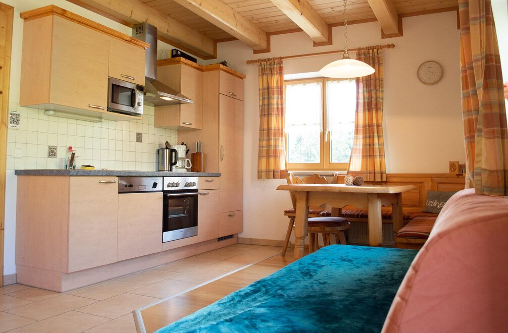 Our apartment "Almrausch" has: fully furnished living-kitchen (dish washer, microwave, oven, fridge,..) TV, internet, eating-corner, couch, sleepingroom with balcony, bathroom with shower and toilet.